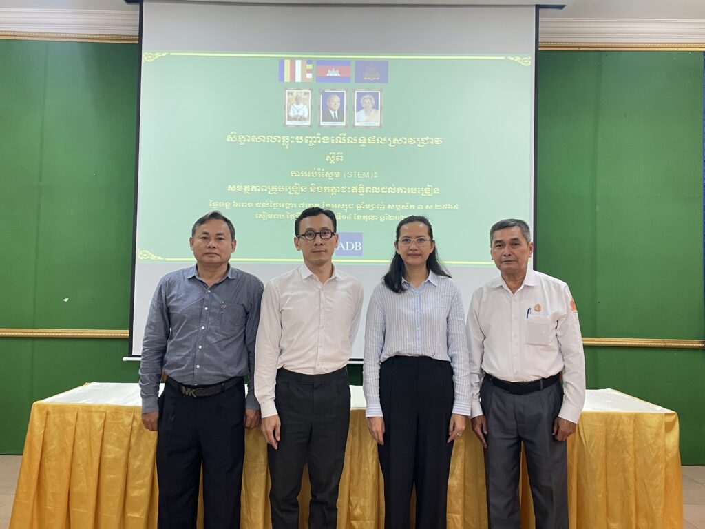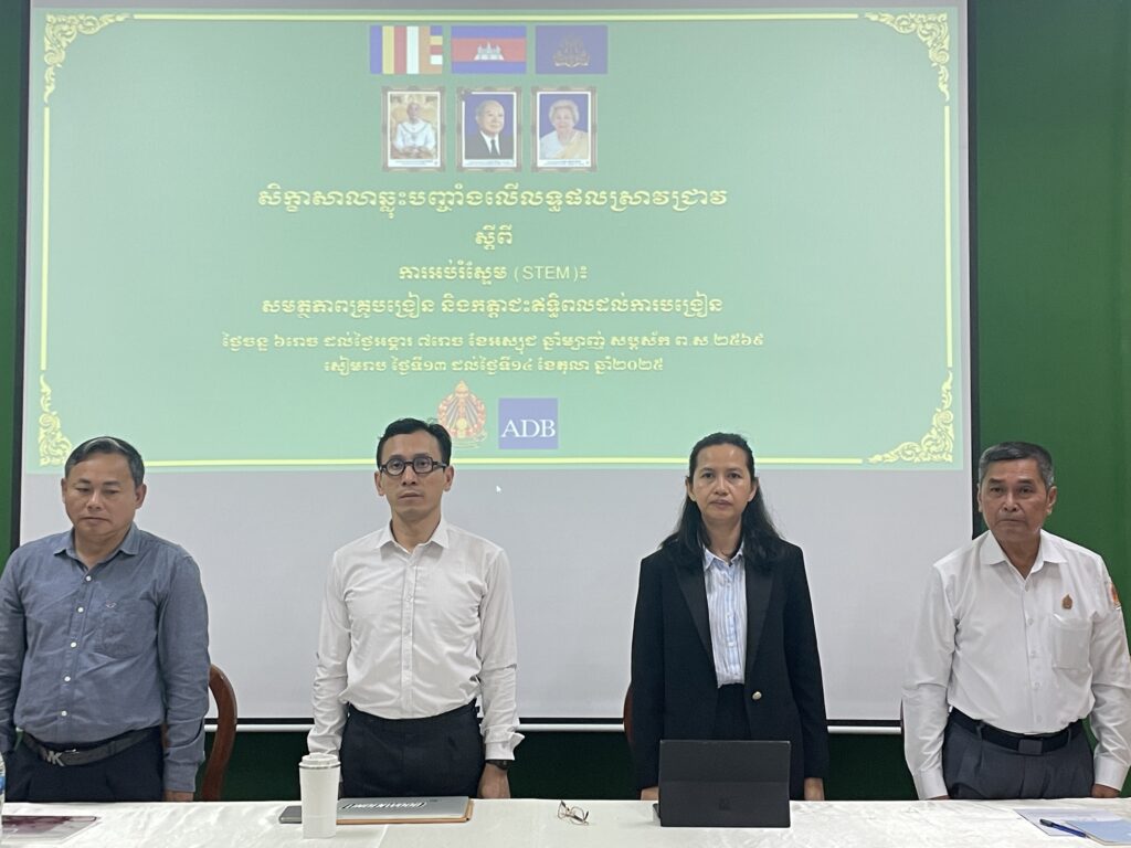 ខេត្តសៀមរាប៖ ថ្ងៃចន្ទ ៦រោច ដល់ថ្ងៃអង្គារ ៧រោច ខែអាស្សុជ ឆ្នាំម្សាញ់ សប្តស័ក ព.ស.២៥៦៩ ត្រូវនឹងថ្ងៃទី១៣ ដល់ថ្ងៃទី១៤ ខែកញ្ញា ឆ្នាំ២០២៥ នាយកដ្ឋានគោលនយោបាយ នៃអគ្គនាយកដ្ឋានគោលនយោបាយ និងផែនការ របស់ក្រសួងអប់រំយុវជន និងកីឡា បានរៀបចំសិក្ខាសាលាឆ្លុះបញ្ចាំងលើរបាយការណ៍ស្រាវជ្រាវក្រោមក្របខណ្ឌគម្រោង STEP UP ស្តីពី “ការអប់រំស្ទែម (STEM) ៖ សមត្ថភាពគ្រូបង្រៀន និងការជះឥទ្ឋិពលដល់ការបង្រៀន” ក្នុងគោលបំណងផ្សព្វផ្សាយនិងឆ្លុះបញ្ចាំងលើលទ្ធផលដែលបានរកឃើញពីការស្រាវជ្រាវដើម្បីផ្សារភ្ជាប់នឹងការអនុវត្តគោលនយោបាយ និងការកំណត់បទអន្តរាគមន៍បន្ត។ សិក្ខាសាលានេះបានប្រព្រឹត្តទៅនៅ វិទ្យាល័យអង្គរ ខេត្តសៀមរាប ក្រោមអធិបតីភាព លោកជំទាវបណ្ឌិត បូ ច័ន្ទគុលិកា អនុរដ្ឋលេខាធិការ ក្រសួងអប់រំ យុវជន និងកីឡា។